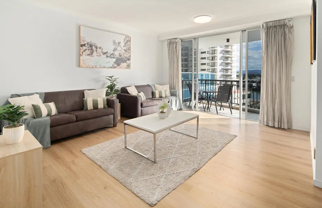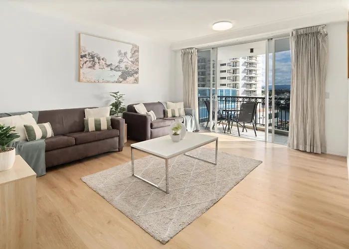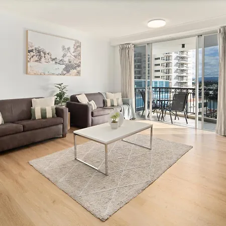 In diesen Apartments stehen Gästen ein Wohnbereich, ein Balkon und eine Küche mit einer Klimaanlage zur Verfügung. Das Apartment Chevron Renaissance Surfers Paradise Sleeps 10 4Th Floor - Optimise Bnb verfügt über ein Badezimmer mit einem Haartrockner und Badelaken. Sie können sich auch eine getrennte Toilette, einen Whirlpool und eine Dusche genießen.